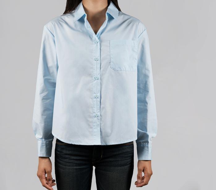 The light blue color adds a fresh, airy touch to your wardrobe, making it a versatile piece that can be dressed up or down. Whether paired with jeans for a laid-back weekend look or tucked into tailored trousers for a polished office outfit, this shirt is sure to elevate any ensemble.